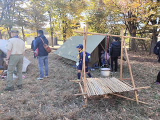 BS体験会でテントを設営し立ちかまを作りました。