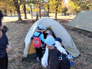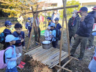 BS体験会でテントを設営し立ちかまを作りました。